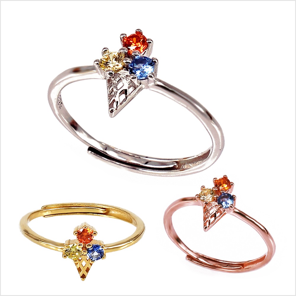 Anello cono gelato in argento 925 con zirconi