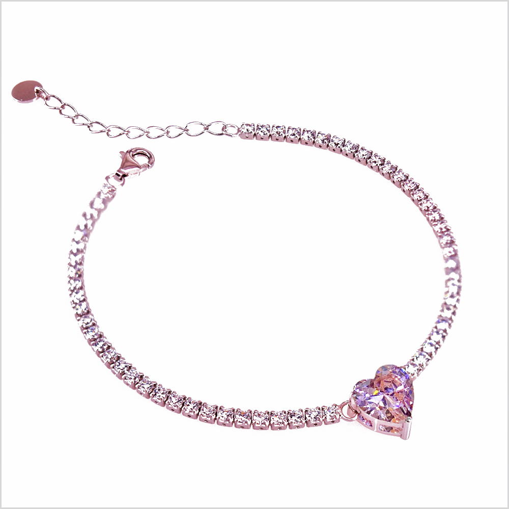 Bracciale tennis in argento con cuore centrale 9mm. (1PZ.)