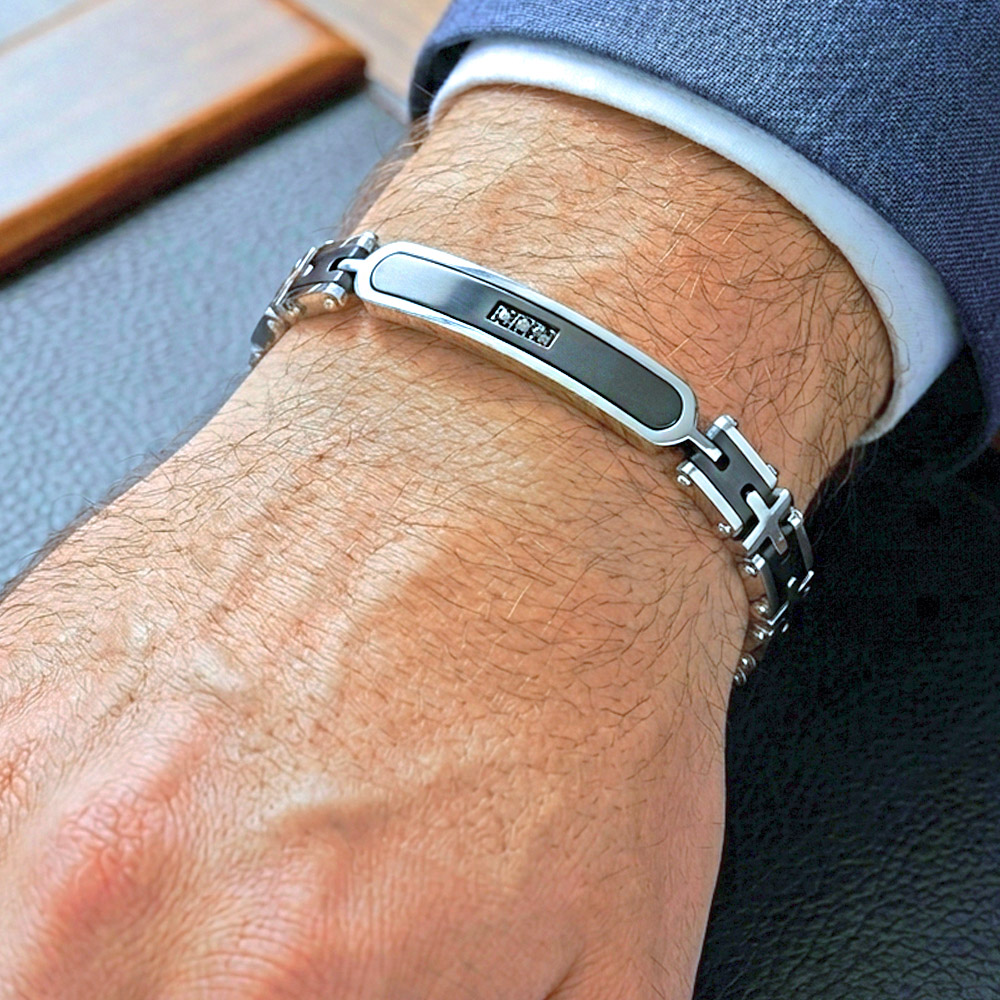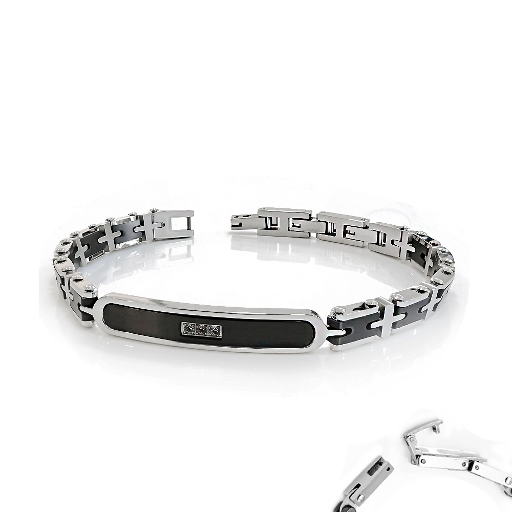 Bracciale da Uomo in Acciaio e Ceramica con Chisura Regolabile