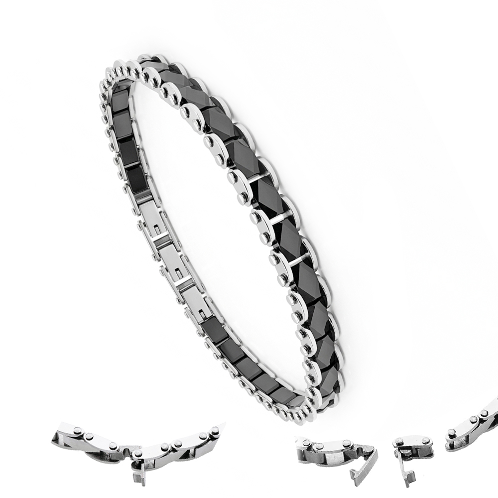 Bracciale da Uomo in Acciaio e Ceramica con Chisura Regolabile