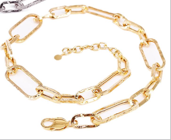 Collane maglia 3+1 rettangolare martellata in argento 925. 46+5cm.