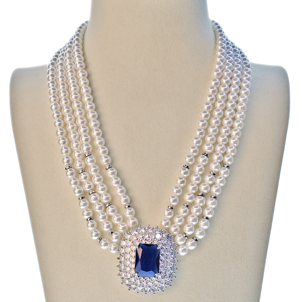 Collana con Centrale Zirconato in Ottone e Perle di Maiorca. 45Cm. (1Pz.)