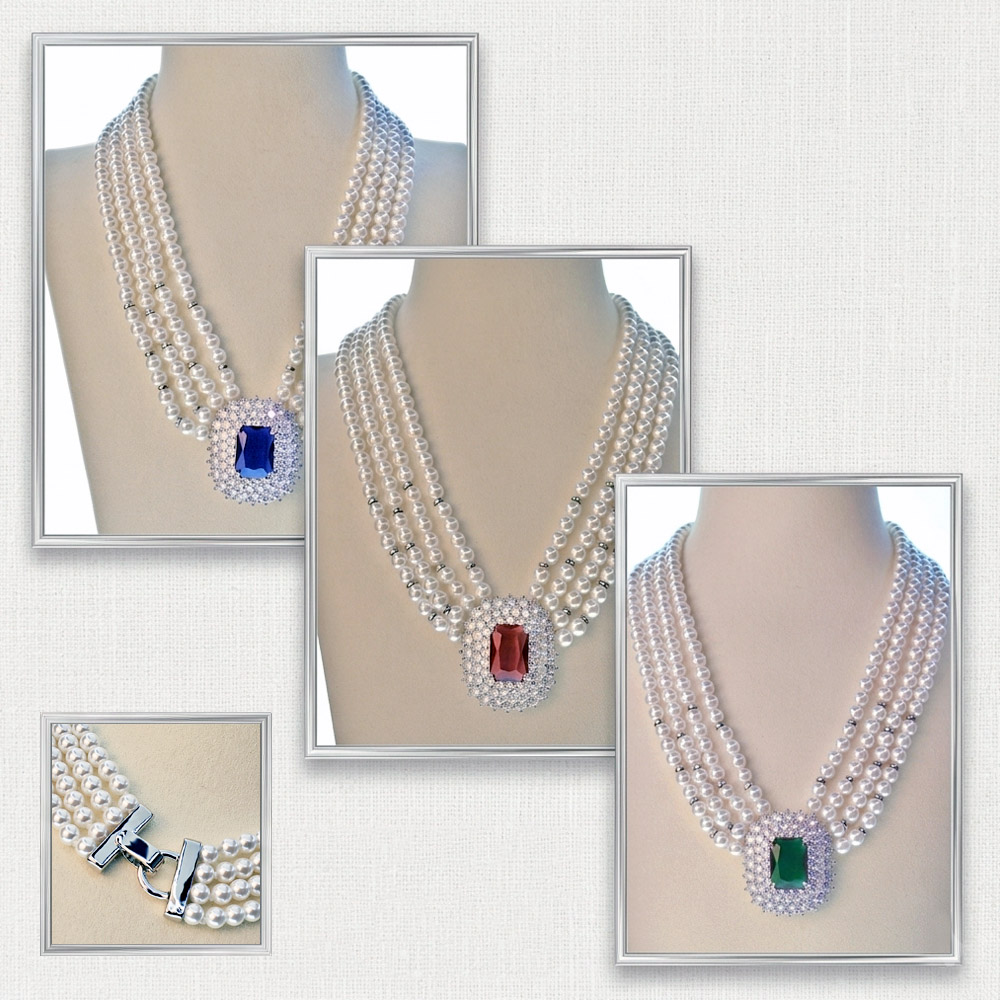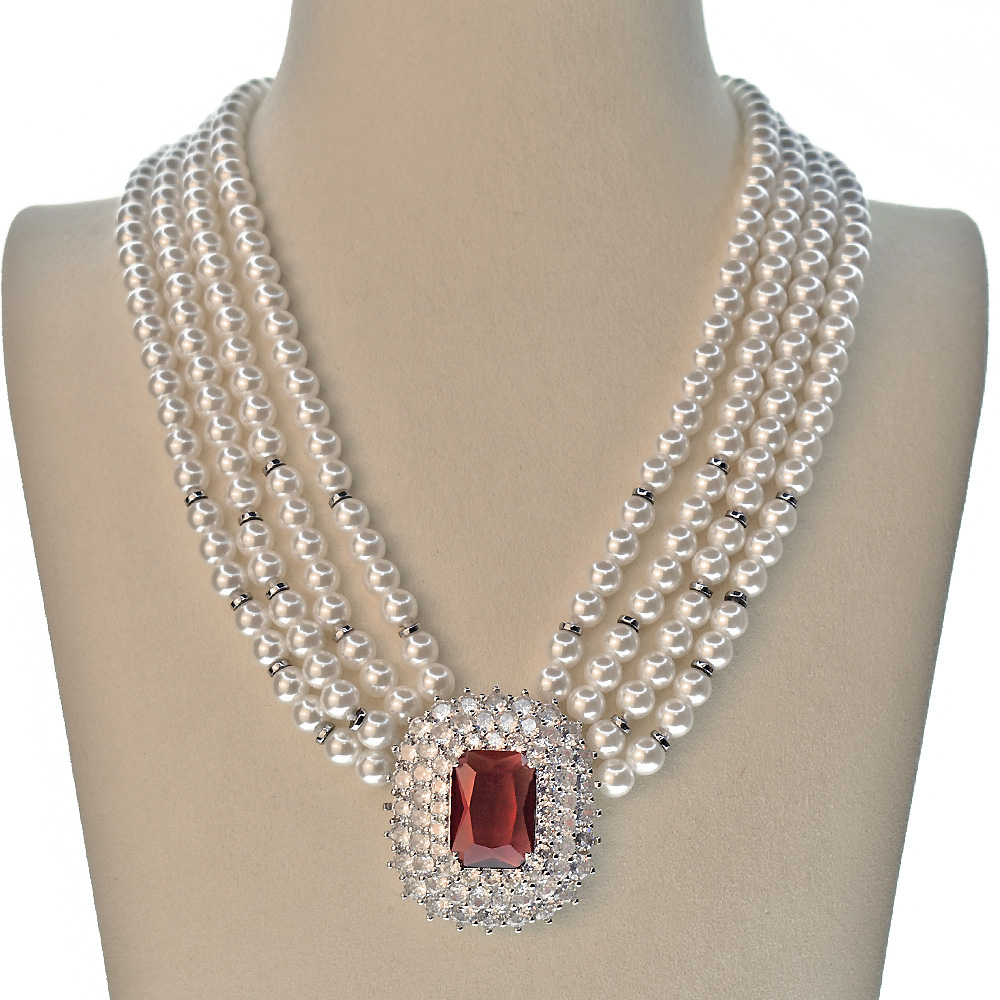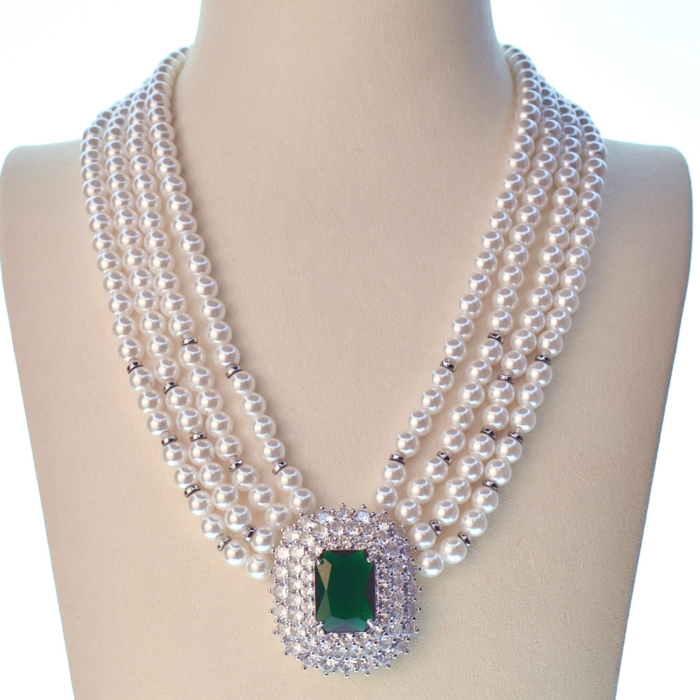 Collana con Centrale Zirconato in Ottone e Perle di Maiorca