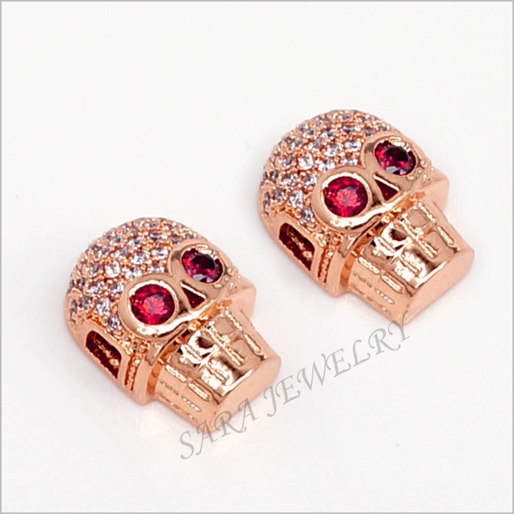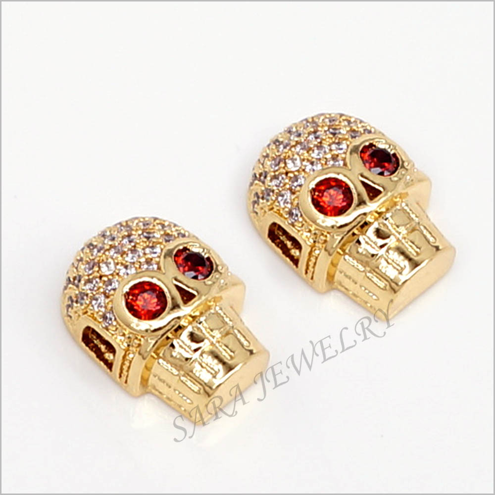 Distanziatori a forma di Teschi in Ottone e Zirconi 10x13mm (2Pz.)
